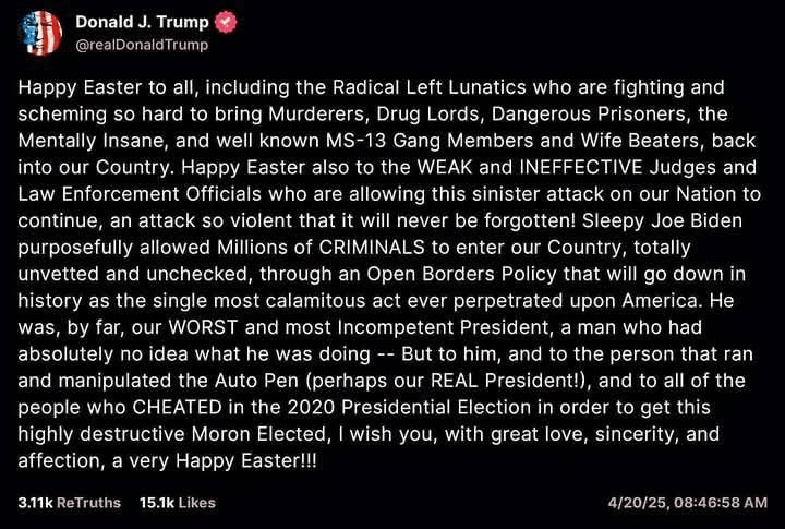 Donald Trump thought this sums up what he wants to say to the people of America today.